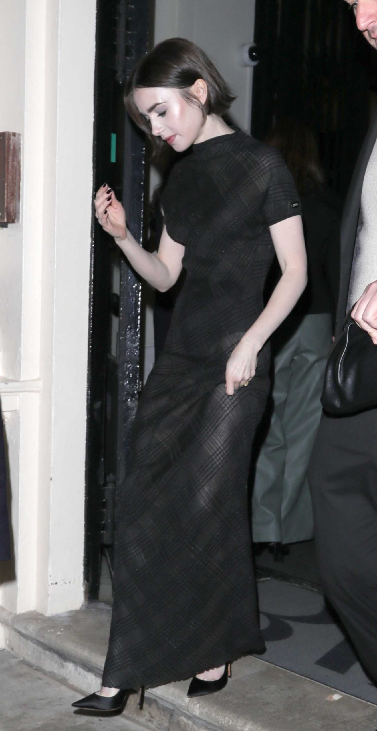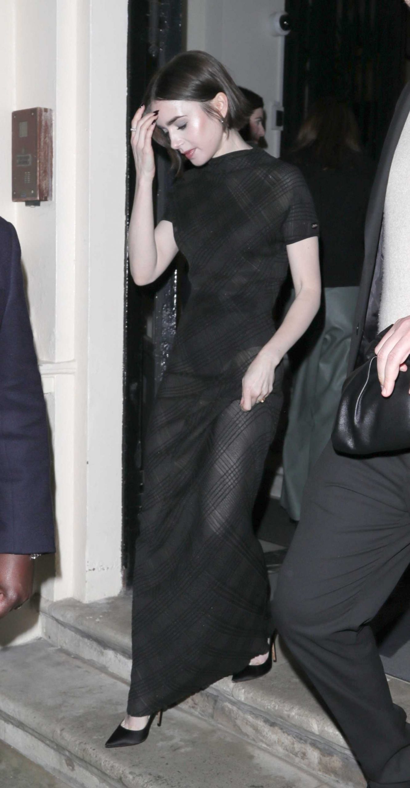 Lily Collins in a Black Dress Was Seen Outside of Her Hotel in Paris Lily Collins in a Black Dress Was Seen Outside of Her Hotel in Paris