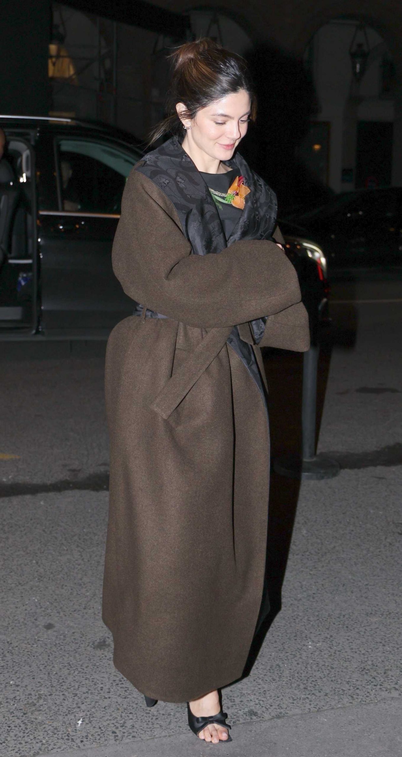 in a Brown Coat Arrives to a Party at the Hotel Costes in Paris 01/27/2026