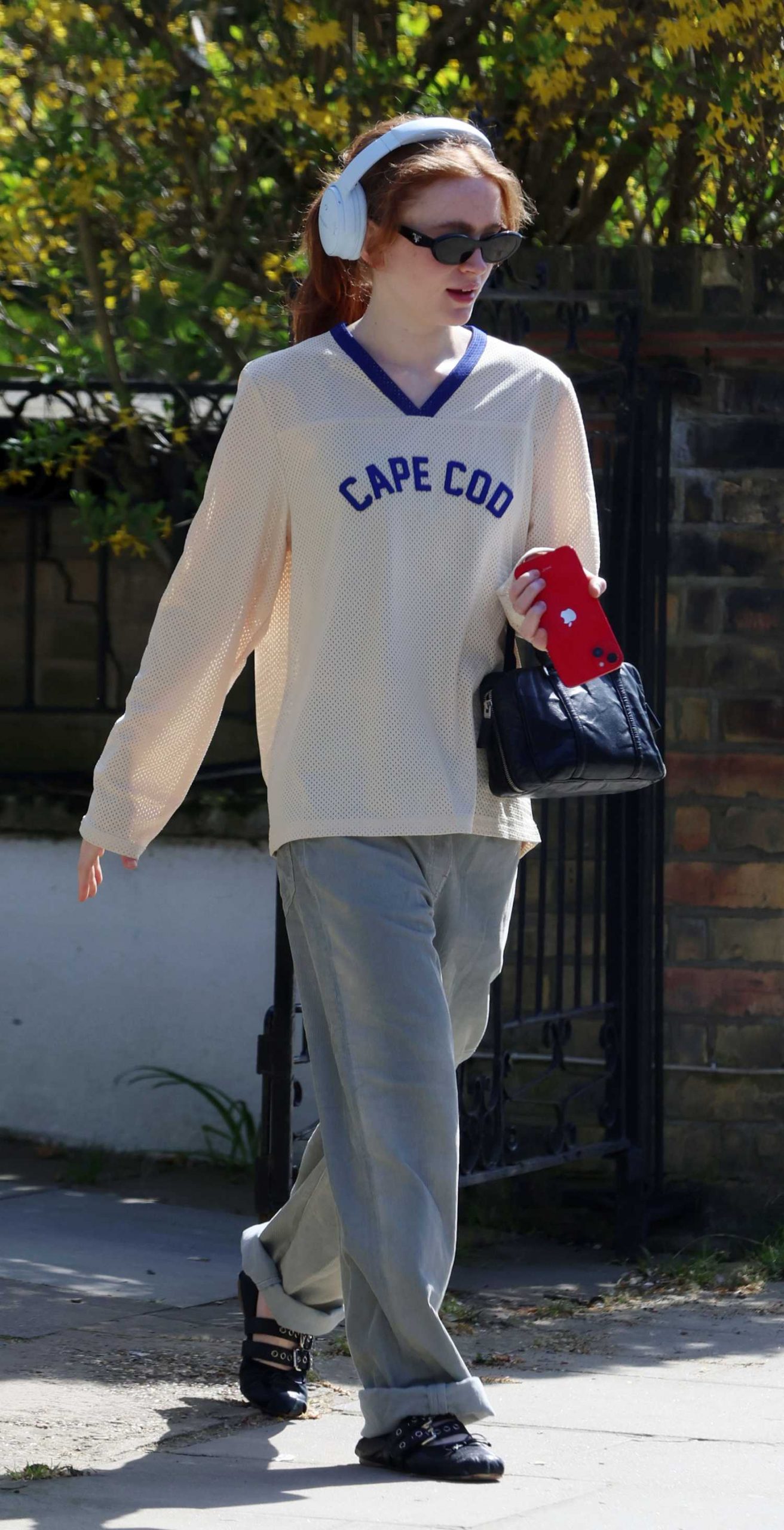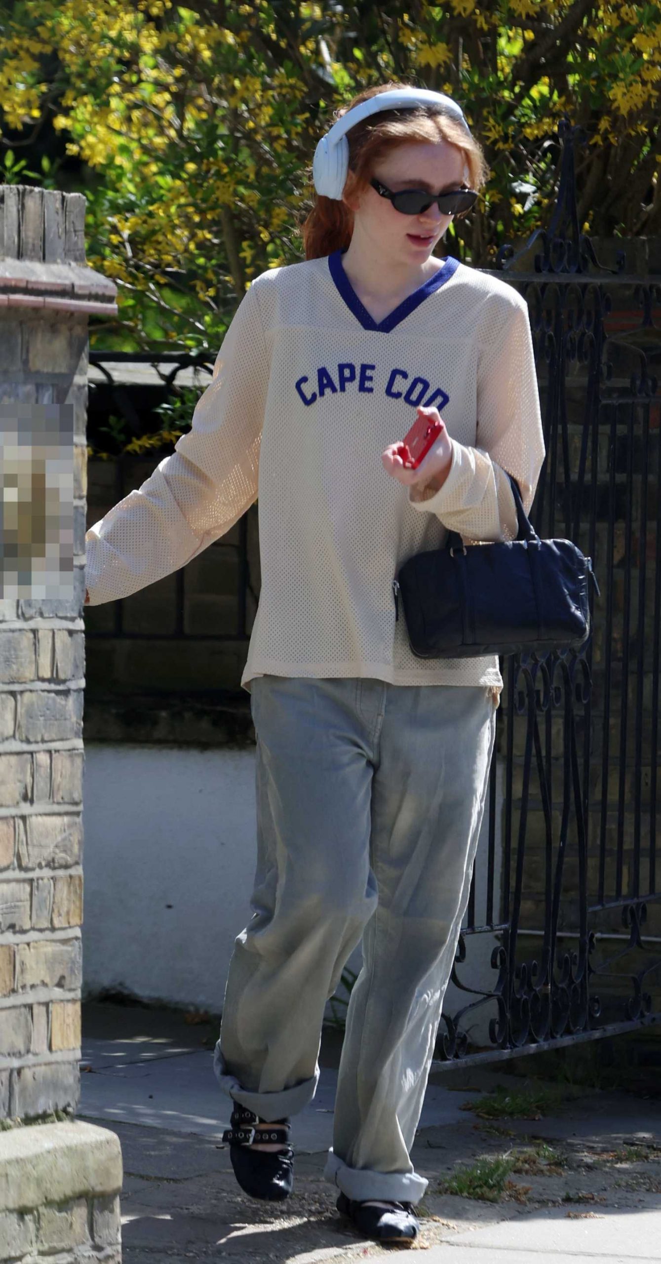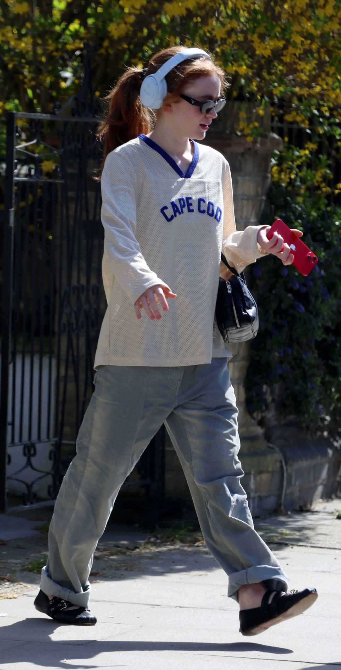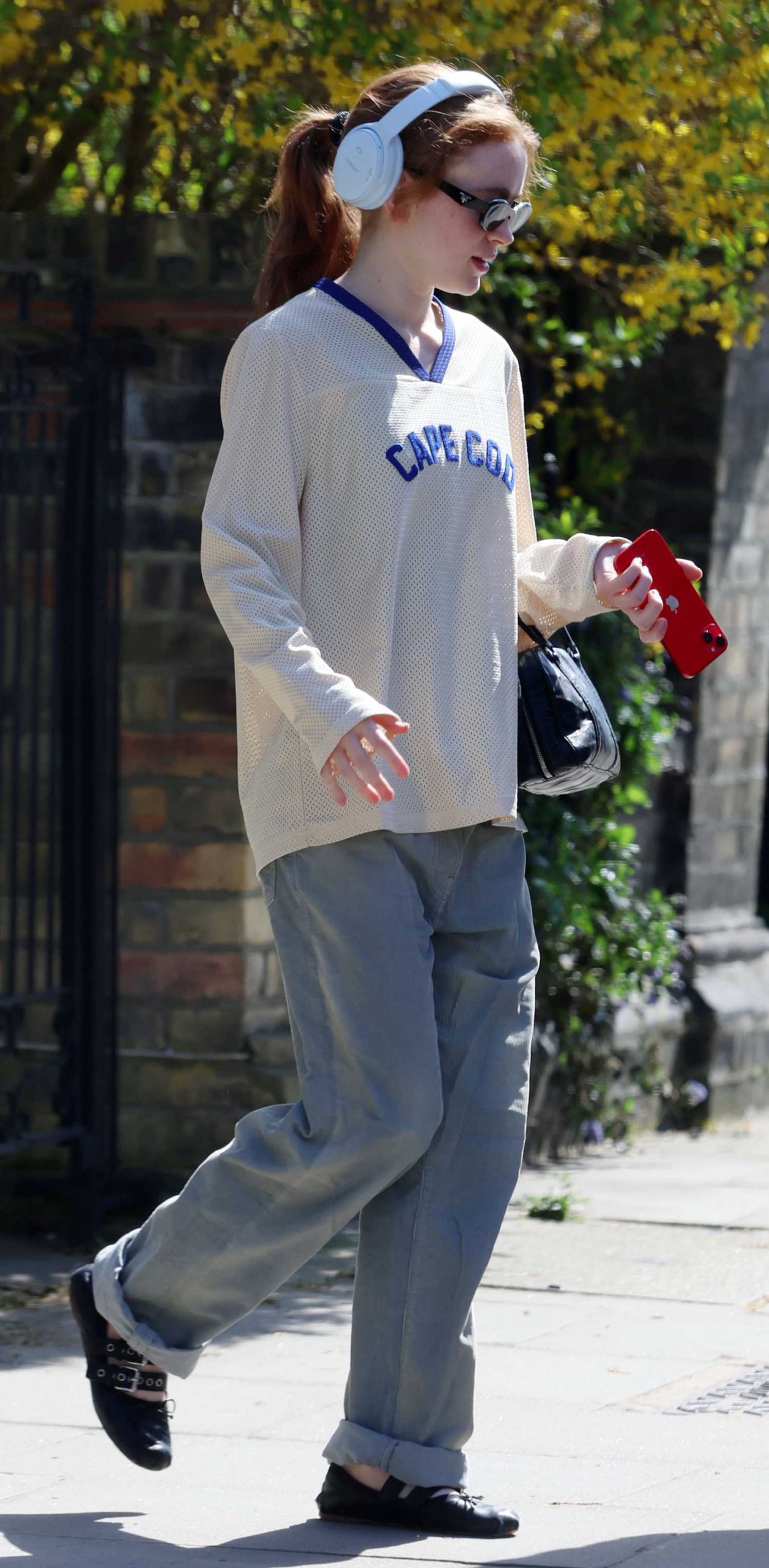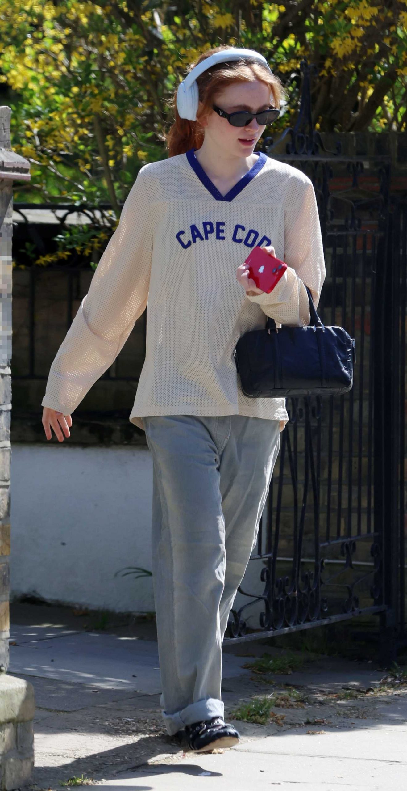 • Sadie Sink in a Grey Jeans Running Errands in Notting Hill in London